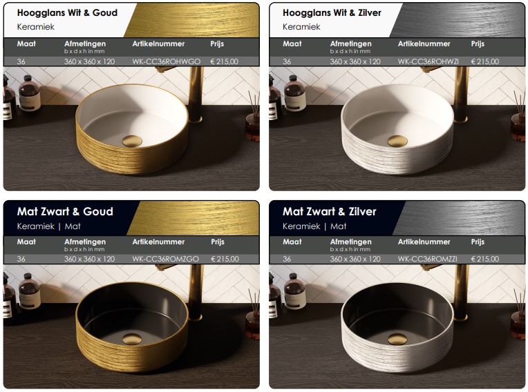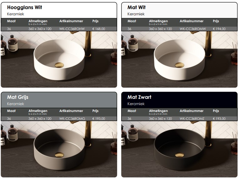 Met waskommen geef je jouw badmeubel een luxe en ruimtelijke uitstraling. Ga bijvoorbeeld voor een waskom uit onze Circle serie die zich kenmerkt door de ronde vorm en opstaande rand. De serie is verkrijgbaar in 1 maat en in 6 kleuren in hoogwaardig keramiek. Wist je dat een waskom jou ook ruimte bespaart? Doordat de waskom op het meubel staat, neemt deze geen ruimte in, in de onderkast en blijft er extra ruimte over om al jouw verzorgingsproducten op te bergen. Combineer de waskom met een inbouw of verhoogde opbouw wastafelkraan en maak jouw waskom compleet met een afvoerplug in één van de 6 kleuren die perfect combineren met kranen en accessoires uit het BRAUER-kranenprogramma. Deze zijn te vinden het hoofdstuk Accessoires.
